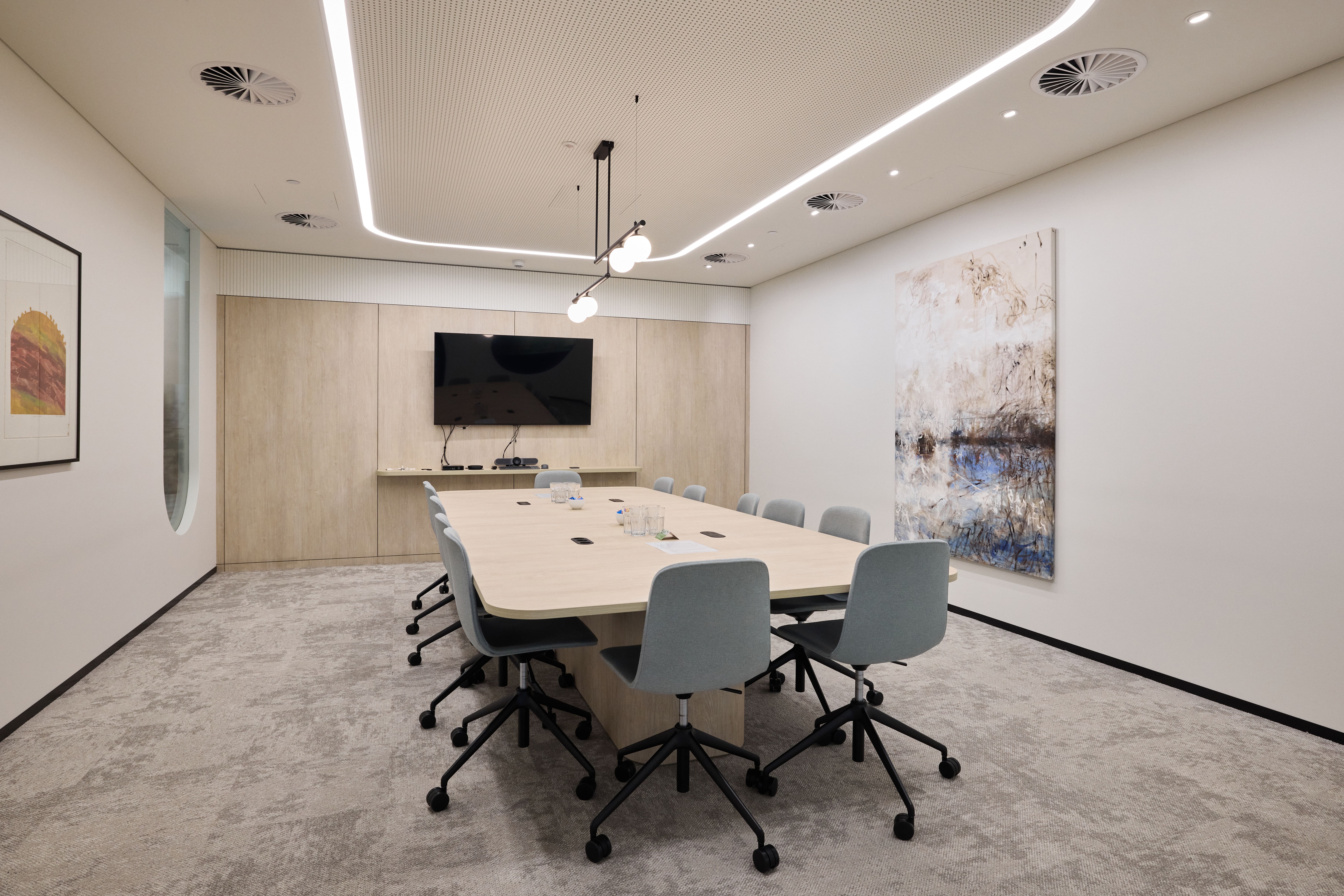 This room is a perfect venue for formal meetings and presentations. It can accommodate up to 14 seated participants and has a professional atmosphere.